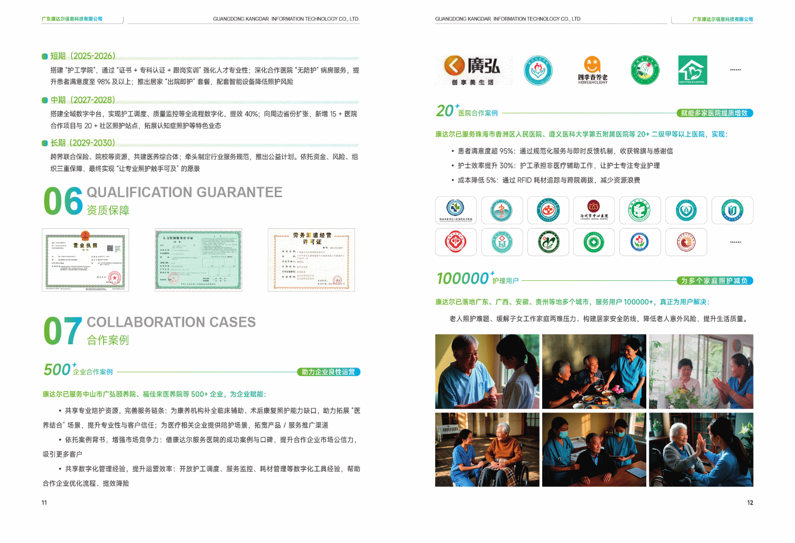 广东康达尔信息科技有限公司成立于2021年,总部扎根广州南沙区,是深耕智慧护理领域的国家级高新技术企业。公司立足人口老龄化加剧,医疗护理资源供需失衡的行业痛点,以“科技赋能护理,服务温暖生命”为核心使命,聚焦数字化手段重构护理服务模式。 自主研发的护理融合管理平台(ASIM),构建起软硬件一体化的智慧护理解决方案,实现从患者信息管理、护理计划制定到护工排版调度、服务质量追溯的全流程数字化覆盖。平台深度整合患者管理、护理记录、医嘱执行、资源调配等核心功能,通过智能派单、实时监护、 数据统计等模块。不仅推动护理服务标准化与高效化,更以全程留痕的数字化管理降低沟通成本与纠纷风险,为医院、护工与患者构建起精准衔接的服务桥梁。